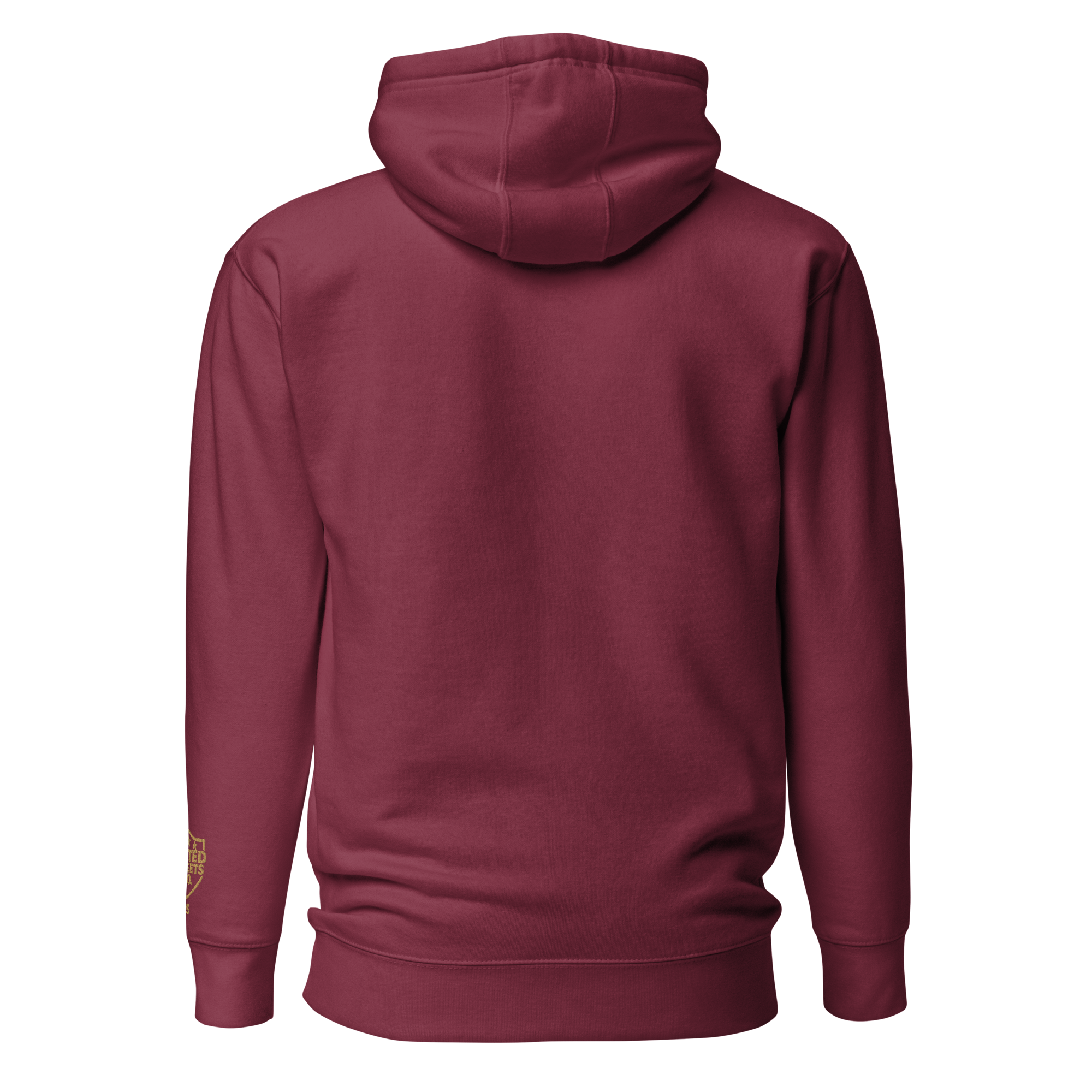 Every hoodie is built from heavyweight fleece with precision embroidery on the chest and wrist. The raised shield defines the piece; the archive mark seals its authenticity.